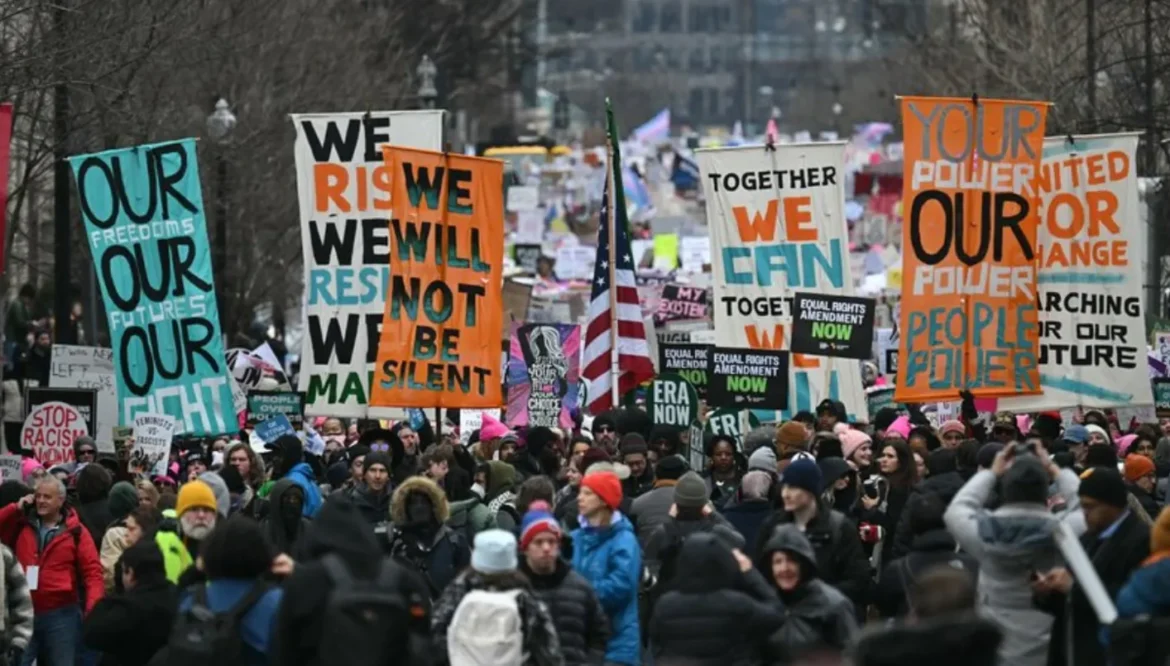 العموم نيوز: تجمع عدة آلاف من الناس في واشنطن السبت، للاحتجاج على تنصيب الرئيس المنتخب دونالد ترامب، إذ احتشد نشطاء مدافعون عن حقوق المرأة والمساواة العرقية وقضايا أخرى ضد سياسات يقولون إنها ستهدد حقوقهم الدستورية خلال الولاية الثانية لترامب.
