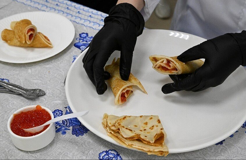 بعد غروب الشمس، شارك الضيوف في مأدبة إفطار وتذوقوا الفطائر الروسية بحشوات متنوعة.