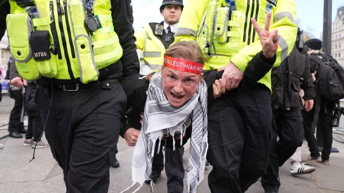 وشهدت ساحة ترافلغار تجمع نحو 500 متظاهر، عبّروا عن رفضهم لتصنيف المجموعة كمنظمة محظورة، رافعين لافتات تضمنت شعارات مثل “أنا ضد الإبادة الجماعية” و”أدعم فلسطين أكشن”.