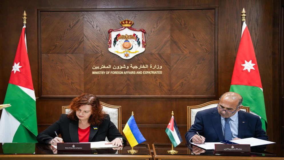 العموم نيوز: وقّع الأمين العام لوزارة الخارجية وشؤون المغتربين السفير ضيف الله الفايز،، وسفيرة أوكرانيا المعتمدة لدى المملكة ميروسلافا شيرباتيوك، الأحد، اتفاقيةً بشأن الإعفاء من متطلبات التأشيرة لحملة جوازات السفر الدبلوماسية أو الخدمة بين حكومة المملكة الأردنية الهاشمية ومجلس وزراء أوكرانيا.