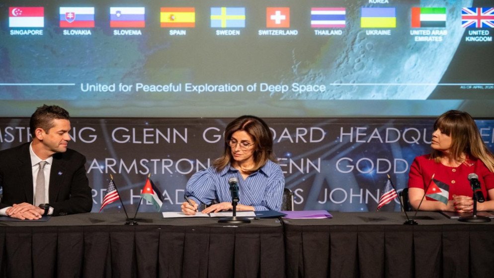 ووقّعت سفيرة المملكة في واشنطن دينا قعوار، اتفاقية الانضمام في مقرّ وكالة الفضاء الأميركية (ناسا)، بحضور مدير الوكالة وممثّلين عن وزارة الخارجية الأميركية.