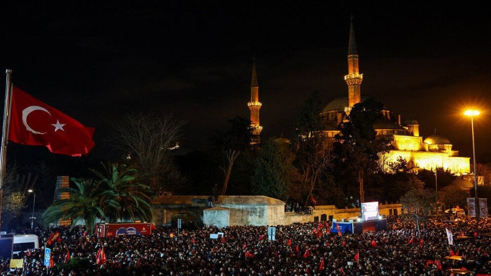 ومساء الثلاثاء، دعا زعيم حزب الشعب الجمهوري، القوة الرئيسة في المعارضة التركية، إلى تظاهرة حاشدة السبت في اسطنبول لدعم رئيس بلدية المدينة المسجون أكرم إمام أوغلو.
