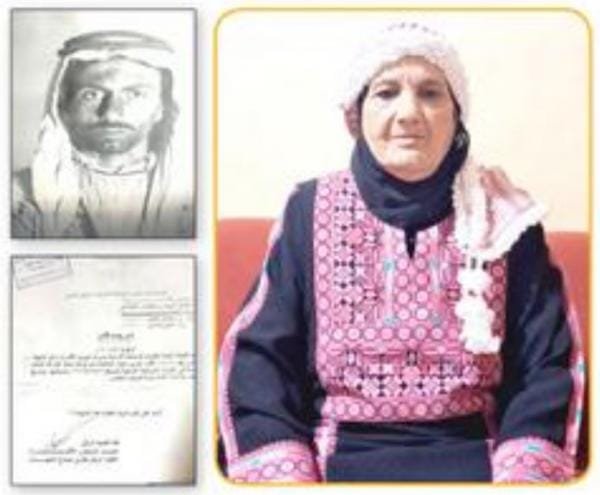 وتستطرد الحديث «كنا نسكن بيوت الشعر، نلامس تراب الوطن يوميا، ونحتضن سماءه، أنا وحيدة لا أخوة لي من والدي، لي شقيقة واحدة من أبي، الذي كان رحمه الله وحيدا لوالديه بلا أشقاء أيضا، توفي والداه مبكرا، تعلمنا منه أن الوطن أغلى من الروح، وأن الذود عنه هو البطولة، فهو العرض والشرف والورثة الحقيقية للاجيال، فالتحق بالجيش وحمل الجندي رقم 18060 وكان عمري قرابة 6 سنوات حينها، وبعد أشهر قليلة هرع مع أبناء الجيش للدفاع عن فلسطين، وأرتقى هناك شهيدا ودفن هناك».