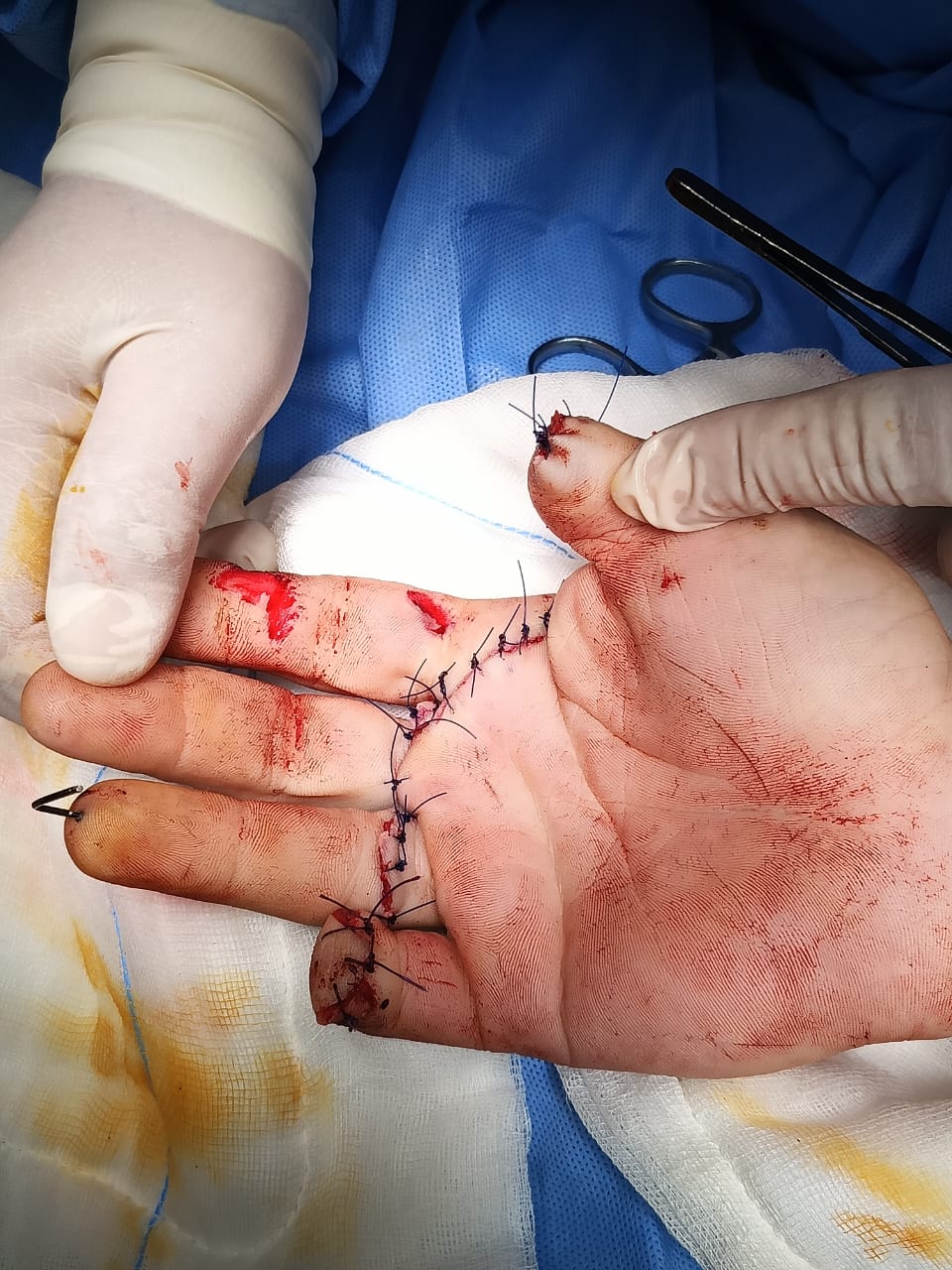 ووفقًا لاستشاري جراحة العظام والمفاصل في المستشفى الدكتور يعقوب الحايك، فقد كان الشاب يعاني من قطع في الأوتار والأعصاب والأوردة والشرايين، إلى جانب كسور معقدة في العظام، ما تطلب تدخلًا دقيقًا لإعادة توصيل الأوتار وخياطة الأنسجة، إضافة إلى تثبيت العظام بقضبان معدنية طبية خاصة، وإجراء خياطة دقيقة للأعصاب، حيث يحتوي كل إصبع على عصبين رئيسيين. وبعد الانتهاء من الإجراءات الجراحية المعقدة، تم إغلاق الجرح، وغسل اليد، وتثبيت الكسور بجبيرة طبية، مع تزويد المريض بالمضادات الحيوية اللازمة عبر الحقن الوريدي.