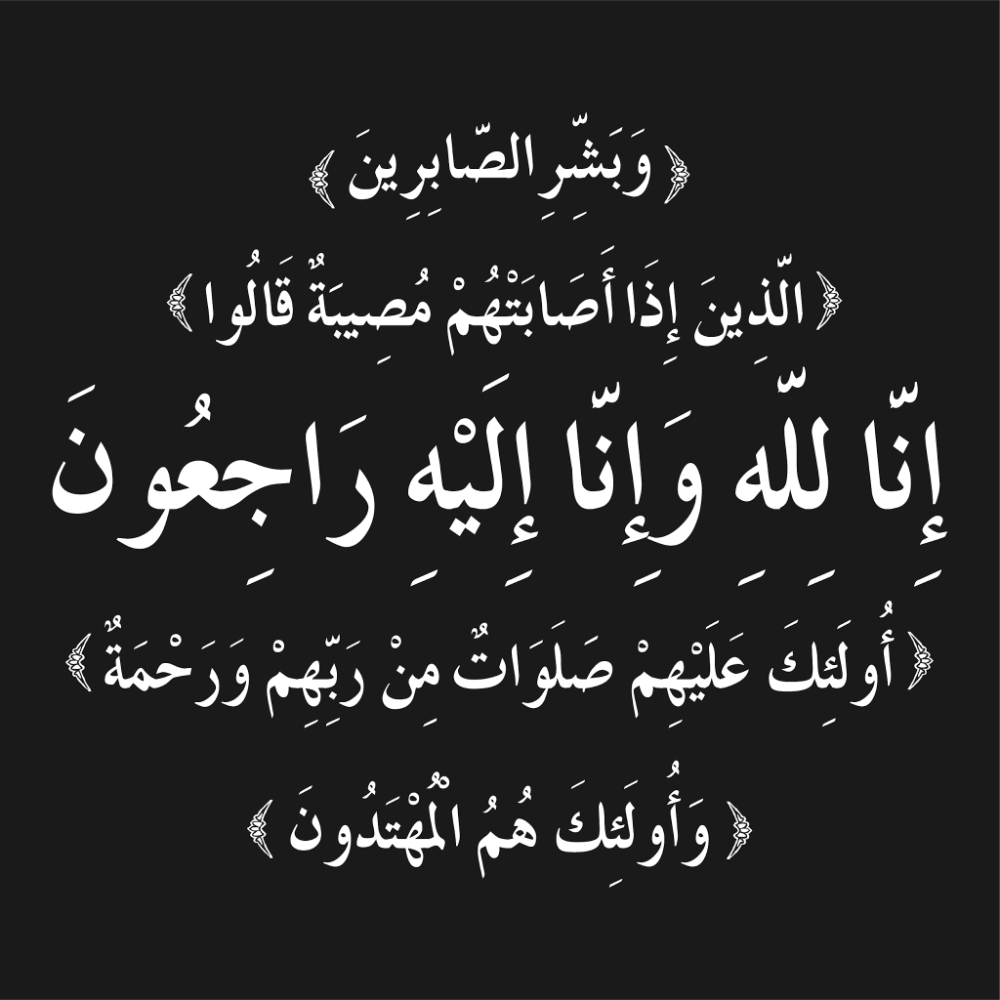 خالص التعازي للأخ السفير وليد الحديد أبو عون وأخوانه وكافة عشيرة الحديد الكرامنسأل المولى عز وجل أن يتغمدها بواسع رحمته، ويسكنها فسيح جناته، ويلهم أهلها وذويها الصبر والسلوان وحسن العزاء.