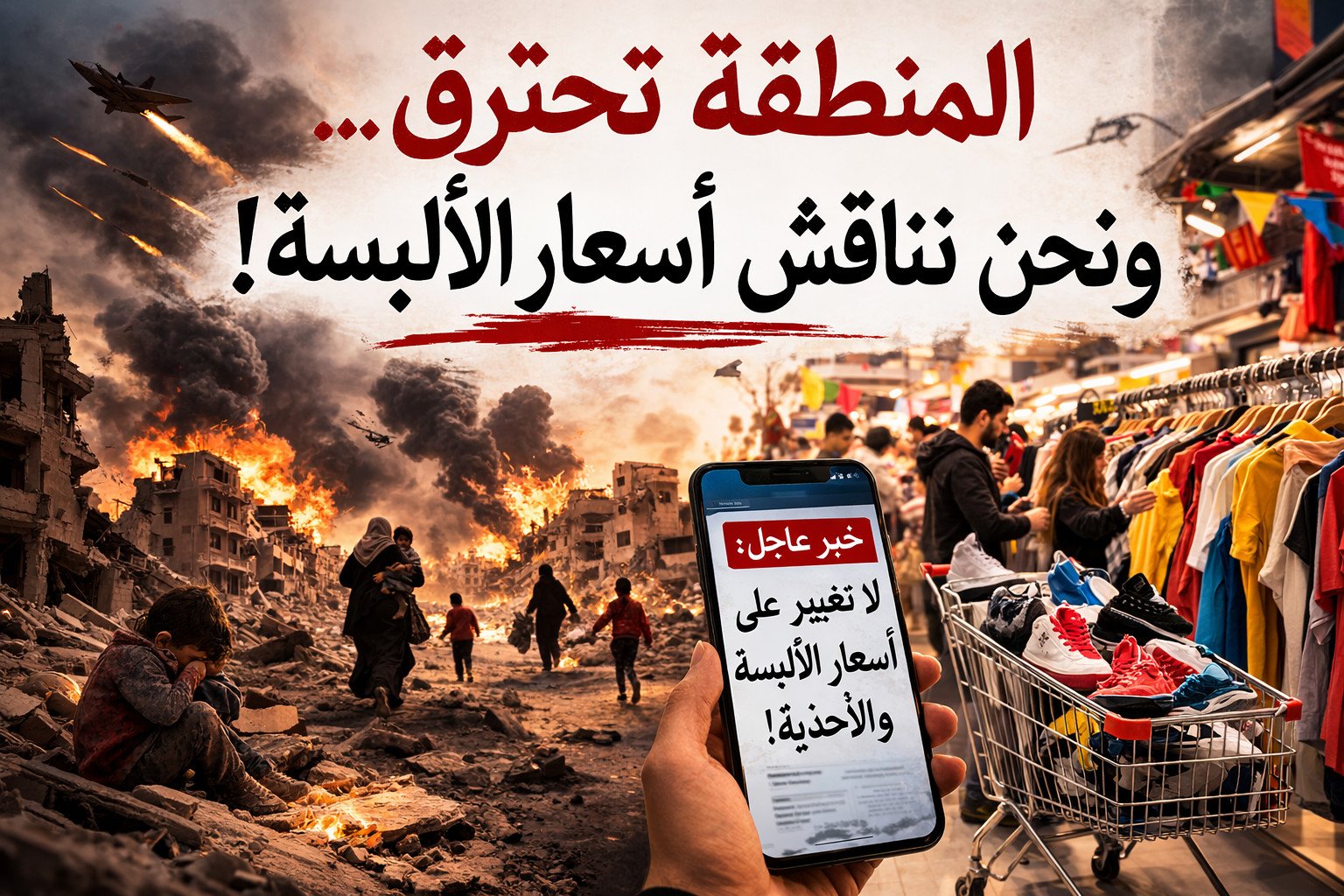 في زمنٍ تتكاثف فيه الغيوم فوق سماء المنطقة، وتتعالى فيه أصوات المدافع أكثر من أصوات الأسواق، يبرز سؤالٌ مؤلم لكنه ضروري: هل أصبحت أخبار أسعار الألبسة والأحذية أولويةً في وعي المجتمع، بينما المنطقة بأسرها تعيش على حافة القلق والاضطراب؟