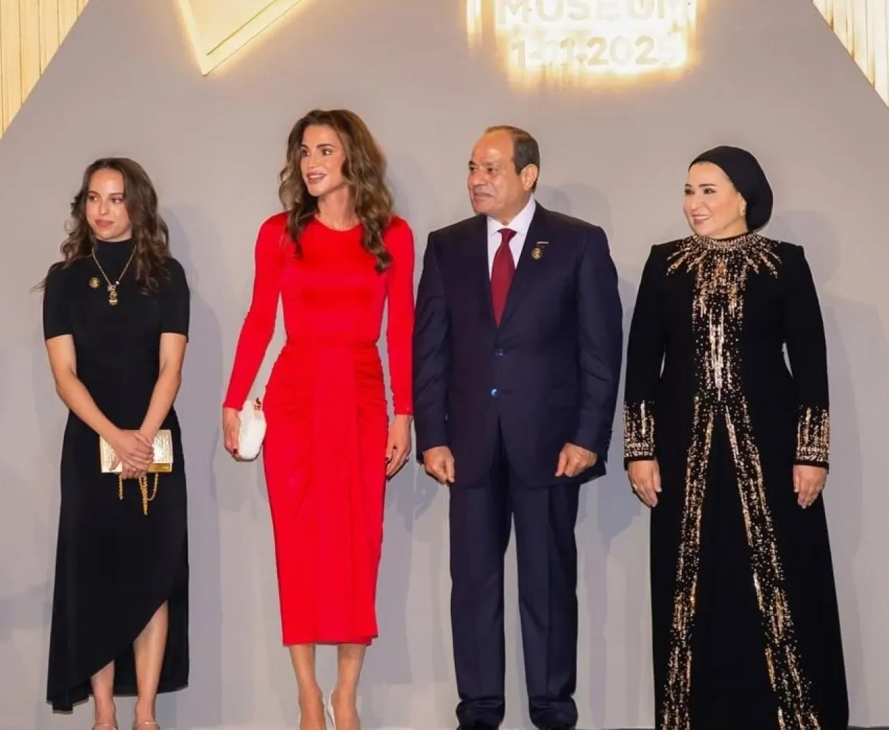 وعلقت جلالتها على الصور قائلة: مساء أمس في حفل افتتاح المتحف المصري الكبير، ممتنة للرئيس عبد الفتاح السيسي والسيدة انتصار السيسي على الترحيب بي وبسلمى.