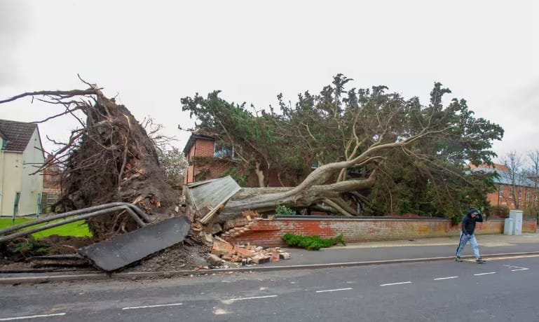 وقد تسببت الرياح العاتية التي وصلت سرعتها إلى 100 ميل في الساعة في بعض المناطق في انقطاع التيار الكهربائي عن أكثر من ربع مليون شخص في غرب إنجلترا وويلز. مما ترك حوالي 118 ألف شخص بلا كهرباء.