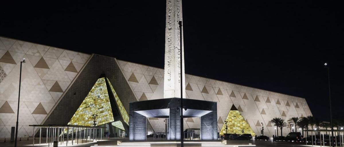 ويطلّ المتحف الكبير على أهرامات الجيزة، ويُخصَّص لتوثيق وحفظ الحضارة الفرعونية الممتدة لأكثر من 30 أسرة و5 آلاف عام.