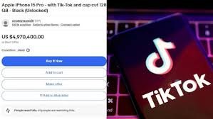 ووفقاً لتقرير نشرته صحيفة نيويورك بوست، عُرض هاتف آيفون يحتوي على تطبيق “تيك توك” مثبت مسبقاً للبيع مقابل 5 آلاف دولار على موقع eBay، وجاء وصف الإعلان لهاتف آيفون 15 برو بسعة 128 جيجابايت: “الحالة ممتازة مع تطبيق تيك توك مثبت عليه”.