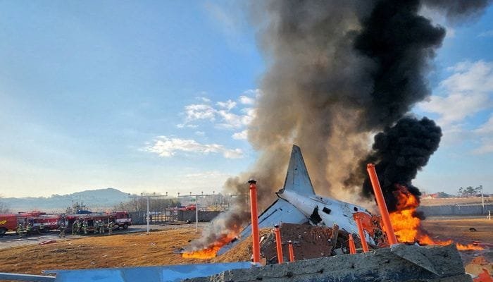 وقالت الوكالة الكورية الجنوبية “يونهاب” إن طائرة تابعة لشركة “جيجو إير” كانت عائدة من تايلاند ووقع الحادث أثناء هبوطها بالمطار الذي يقع على بعد 288 كيلومترًا جنوب غرب سول، مما أدى إلى اصطدامها بأحد جدران مطار موان الدولي بكوريا الجنوبية قبل أن تشتعل النيران فيها.