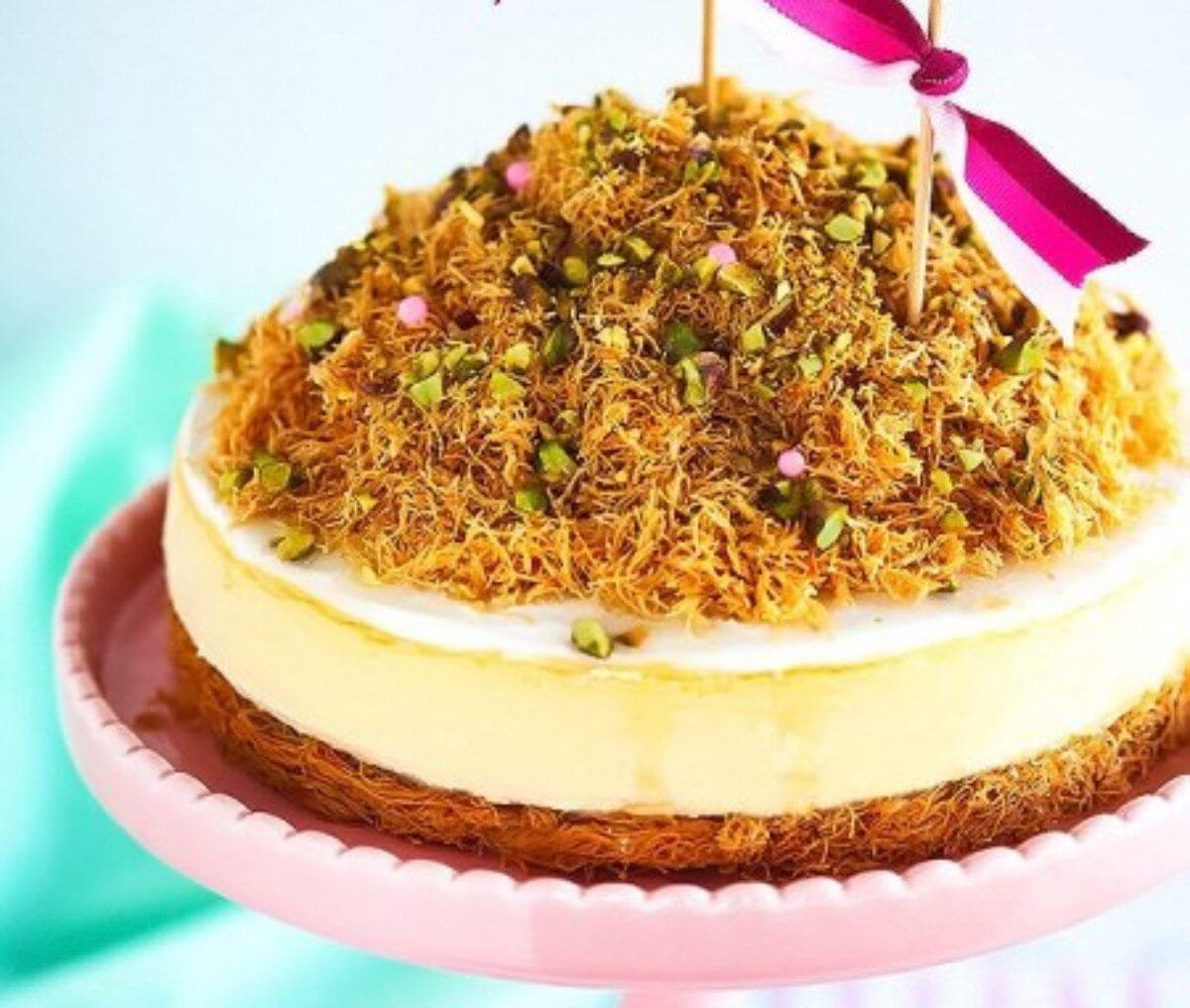 تشيز كيك الكنافة … حلوى رمضانية مبتكرة تجمع بين النكهات الشرقية والغربية. استمتعي بطعم التشيز كيك الغني وقوام الكنافة المقرمشة، وتعلمي أسهل طريقة لتحضيرها .