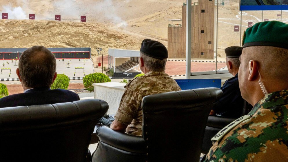 وجرى تنفيذ التمرين بحضور مدير المخابرات العامة اللواء أحمد حسني، ومدير الأمن العام اللواء عبيدﷲ المعايطة، والقائم بأعمال رئيس هيئة الأركان المشتركة، المساعد للعمليات والتدريب العميد الركن نجي المناصير.