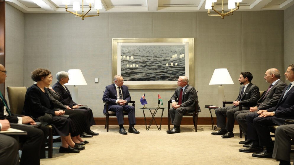 العموم نيوز: ثمن جلالة الملك عبدالله الثاني اعتراف أستراليا بالدولة الفلسطينية خلال لقائه رئيس وزراء أستراليا آنتوني ألبانيزي في نيويورك، بحضور سمو الأمير الحسين بن عبدالله الثاني ولي العهد.