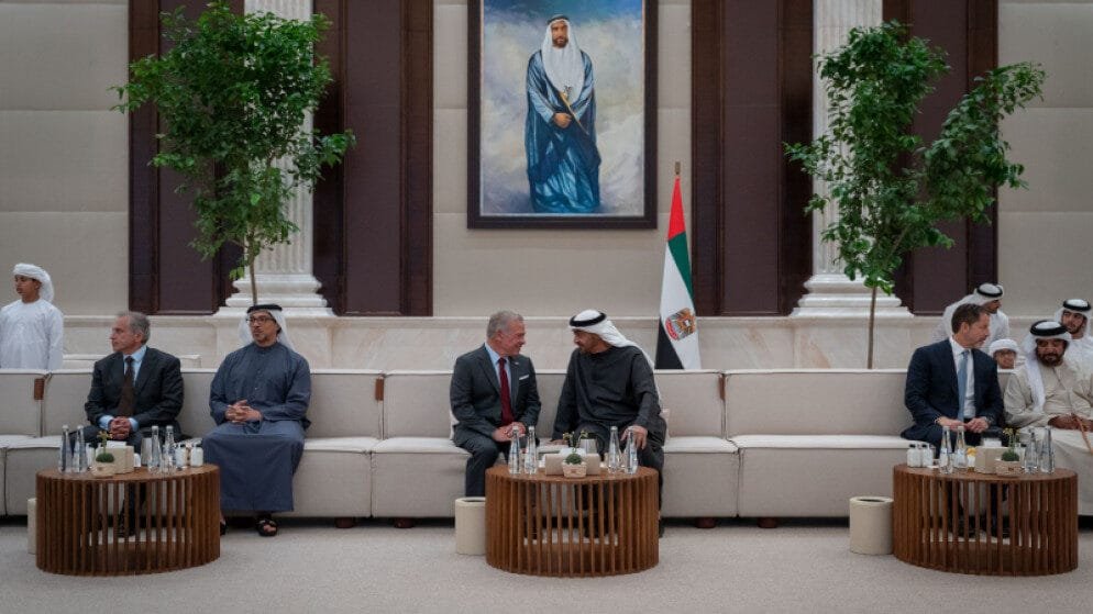 وخلال الزيارة، عقد جلالة الملك وسمو الشيخ محمد بن زايد آل نهيان، رئيس دولة الإمارات، اجتماعًا في قصر البطين بأبوظبي.