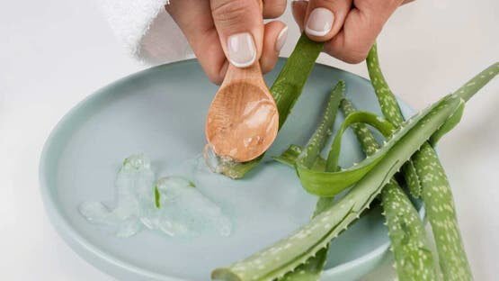 • تسريع نمو الشعر: يحتوي جل الألوفيرا على أنزيمات محللة للبروتين تساهم في التخلص من خلايا الجلد الميتة المتراكمة على فروة الرأس. وعندما تصبح فروة الرأس صحية، ينمو الشعر بشكل أسرع تلقائياً.