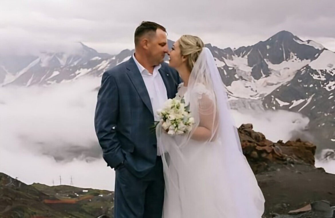 أقيم حفل زفاف رسمي على جبل إلبروس، أعلى قمة جبلية في أوروبا، حيث تزوج الشاب الروسي أنطون من حبيبته كريستينا.
