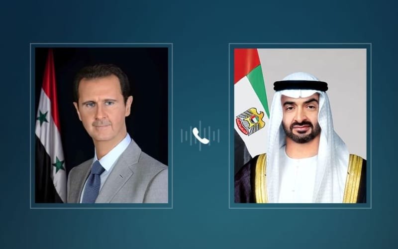 أجرى الشيخ محمد بن زايد آل نهيان رئيس الدولة الأمارات العربية المتحدة اليوم اتصالا هاتفيا مع الرئيس السوري بشار الأسد رئيس