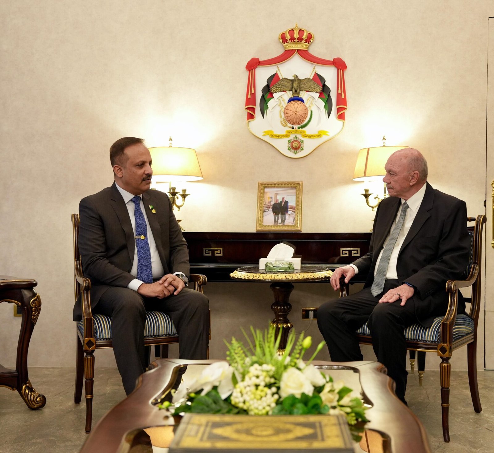 13 نيسان (العموم نيوز)- التقى رئيس مجلس الأعيان فيصل الفايز في مكتبه اليوم الاثنين، السفير الباكستاني لدى المملكة خرم سرفراز خان ، وبحث معه أوجه العلاقات الثنائية بين البلدين الصديقين وسبل تعزيزها في مختلف المجالات، بالإضافة إلى الأوضاع الراهنة في المنطقة، وآخر تطورات الحرب الإيرانية الأميركية الإسرائيلية.