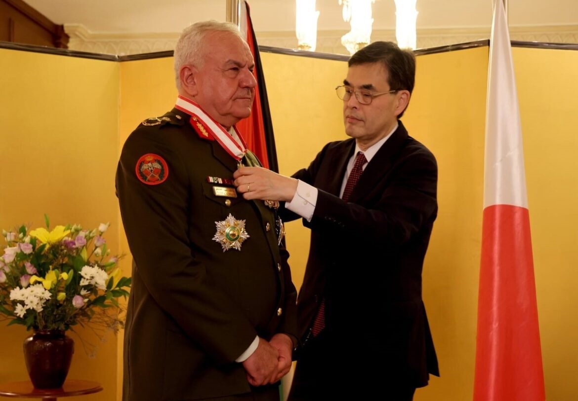 العموم نيوز- تسلم رئيس هيئة الأركان المشتركة اللواء الركن يوسف أحمد الحنيطي، مساء اليوم الثلاثاء وسام “الشمس المشرقة” الممنوح من قبل إمبراطور اليابان تقديراً لجهوده المتميزة في تعزيز التعاون العسكري بين الأردن واليابان.