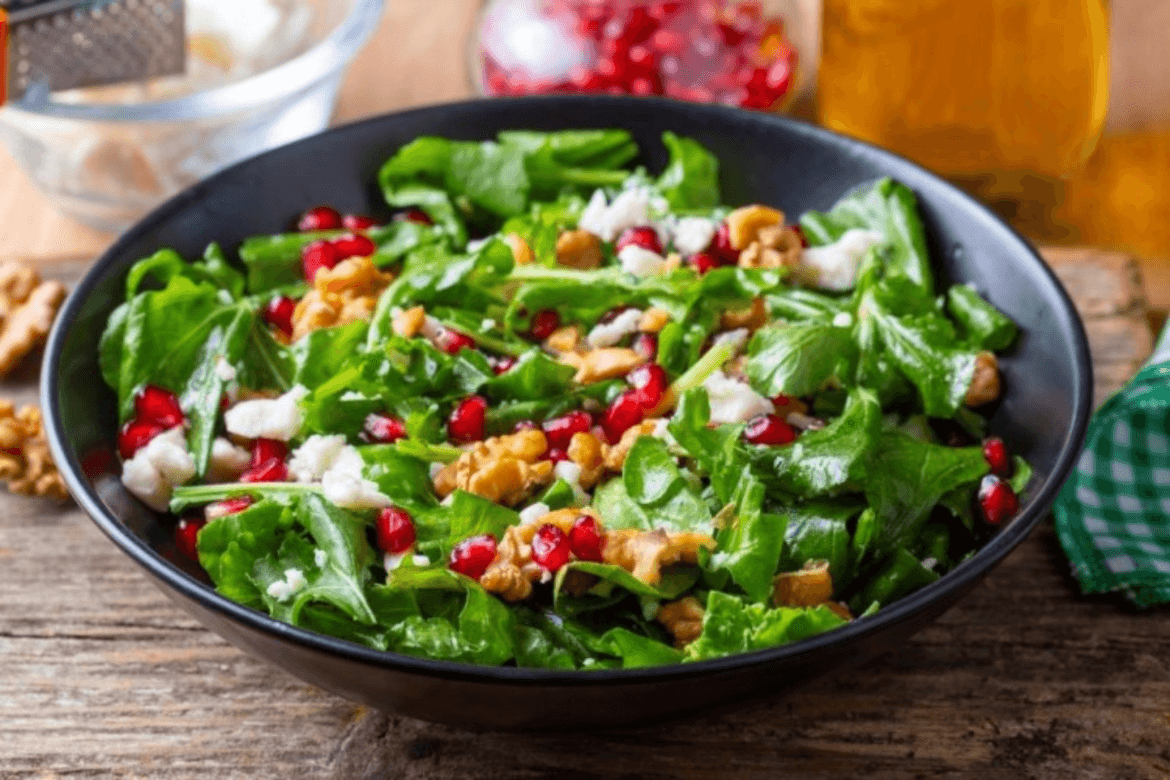 تعد السلطة من الأطباق الجانبية الأساسية على سفرة الغداء والعشاء، ومن أشهر تلك السلطات سلطة الجرجير الشهية والمفيدة، حيث يحتوي الجرجير على عناصر ومواد مهمّة لجسم الإنسان، جربي وصفتنا بإضافة الجوز، والرمان، وتتبيلة دبس الرمان الرائع الطعم .