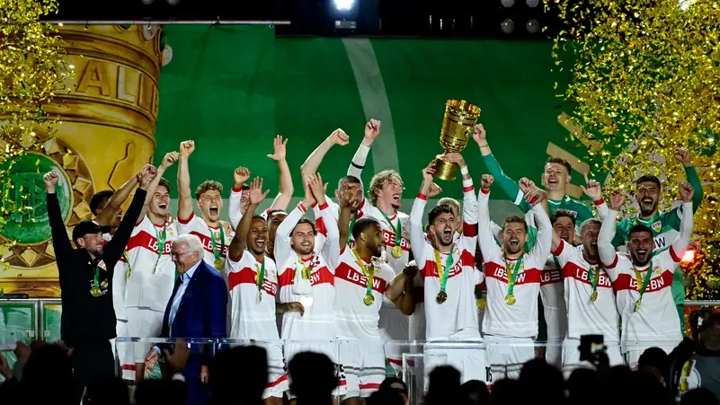 العموم نيوز: أحرز شتوتغارت بطولته الرابعة في مسابقة كأس ألمانيا بعد فوزه على أرمينيا بيليفيلد من الدرجة الثالثة 4-2 يوم السبت على الملعب الأولمبي في برلين في المباراة النهائية، منهيا صياما دام 28 عاما.