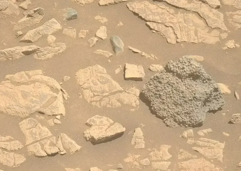 العموم نيوز: في اكتشاف غريب ومثير على سطح كوكب المريخ، تمكنت مركبة “بيرسيفيرانس” التابعة لوكالة ناسا من رصد صخرة بنية صغيرة تحتوي على كتلة شبيهة بالكائنات الفضائية، تتكون من مئات الكرات التي يبلغ قطر كل واحدة منها حوالي مليمتراً واحداً. هذه الكتلة الغريبة، التي تشبه طبق العدس أو بيضة عنكبوت على ورقة شجر، أدهشت العلماء الذين لا يزالون غير متأكدين من طبيعتها الجيولوجية.