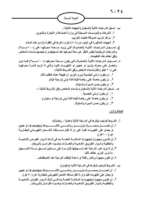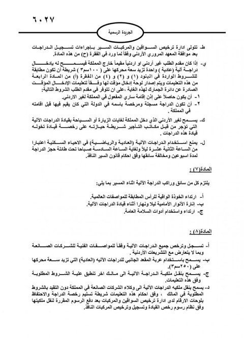 صدر في عدد الجريدة الرسمية أمس الخميس، تعليمات جديدة لتسجيل وترخيص الدراجات الآلية.