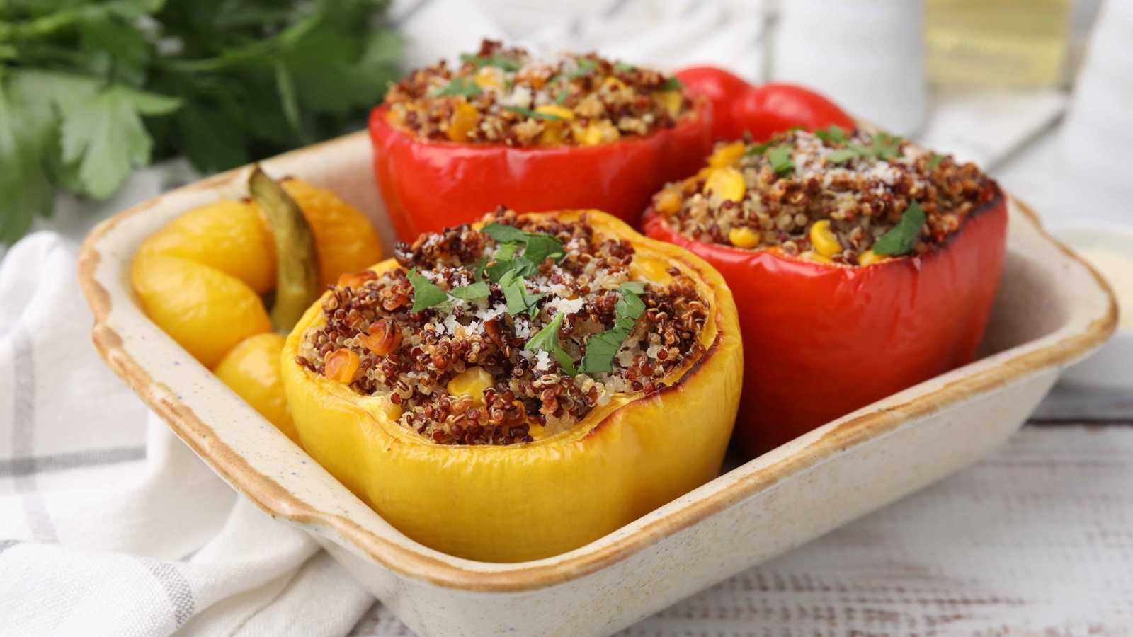 العموم نيوز: استمتعي بوجبة صحية ولذيذة مع الفلفل المحشي بالكينوا والذرة، وصفة سهلة التحضير تمنحك توازنًا مثاليًّا بين الطعم الشهي والقيمة الغذائية العالية. إليك طريقة تحضيرها خطوة بخطوة.