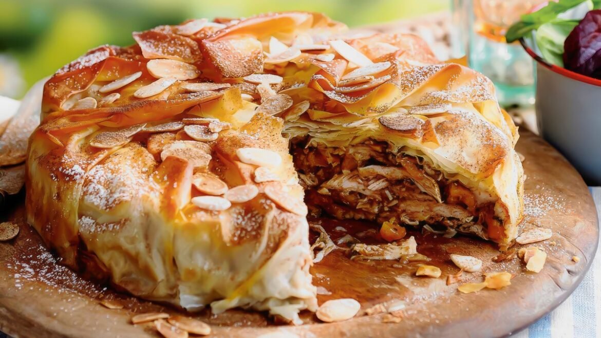 العموم نيوز: من المطبخ المغربي، اخترنا لكِ وصفة “بسطيلة الدجاج باللوز”.