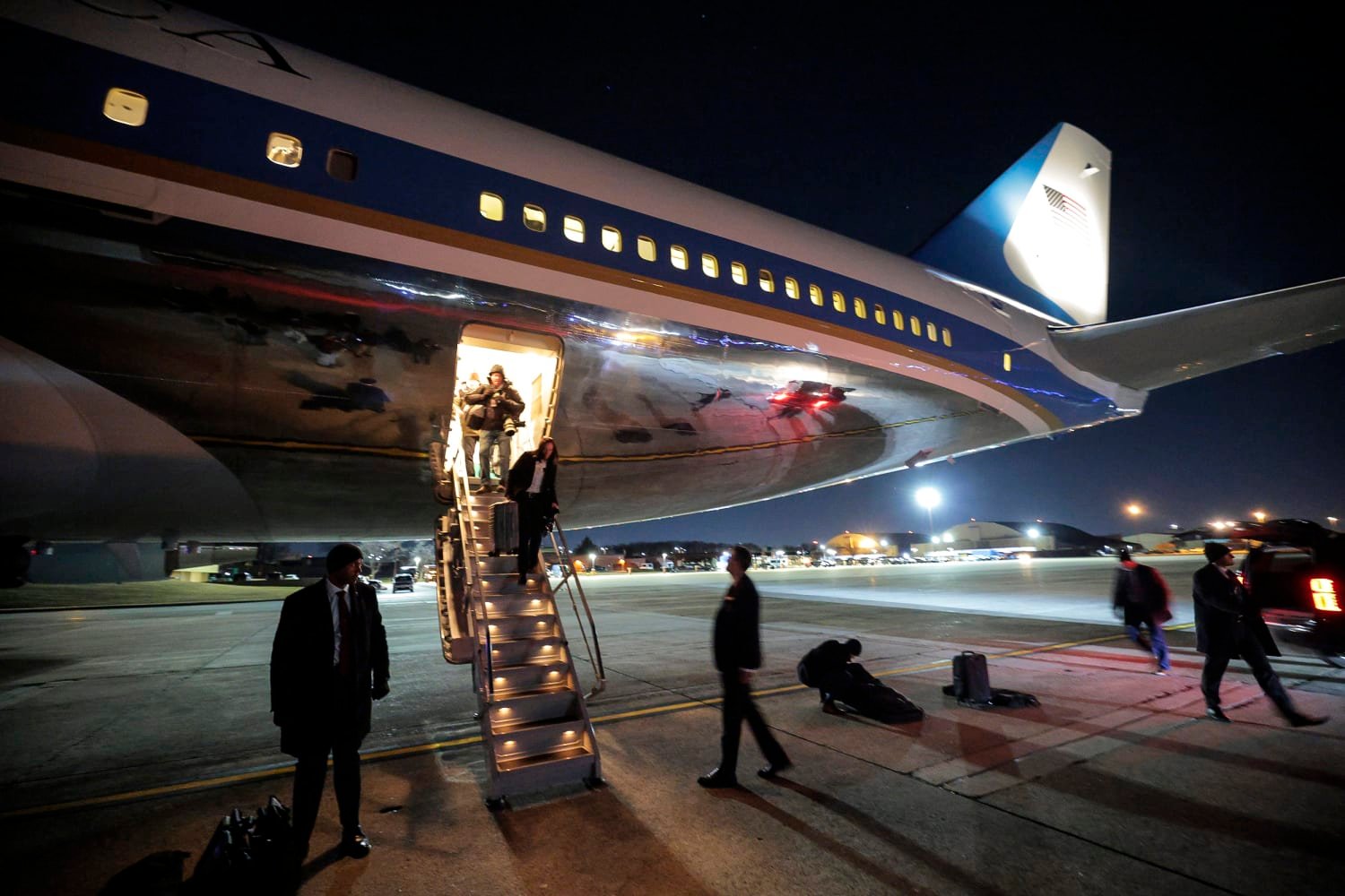 وقالت السكرتيرة الصحفية للبيت الأبيض كارولاين ليفيت إن الرئيس سيواصل رحلته على متن طائرة أخرى.