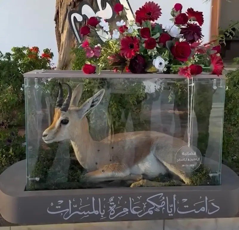 ويوثق المقطع المصور غزال “الدوركاس” وقد وضع بعناية داخل صندوق زجاجي شفاف، محاطا بالورود الحمراء، لكن رغم طابعه الاحتفالي فقد أثار انزعاجاً واسعاً، حيث انتقد ناشطو مواقع التواصل الاجتماعي هذا السلوك، معتبرين أن يجسّد استغلال الحيوانات في المناسبات الاجتماعية وتحويل كائن بري إلى عنصر للاستعراض والتباهي، دون مراعاة لحقوقه وطبيعته البريّة.