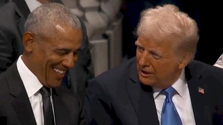 وجلس ترامب بجانب أوباما في الكنيسة، وشوهدا وهما يتحدثان مع بعضهم البعض ويبتسمون في محادثة مطولة، قبل أن يضحك أوباما على كلمات مازحة من ترامب.