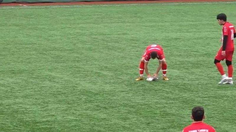 Muhammet Uyanık was clearing the ball from the penalty area and accidentally struck a seagull in flight — it fell onto the pitch unconscious.