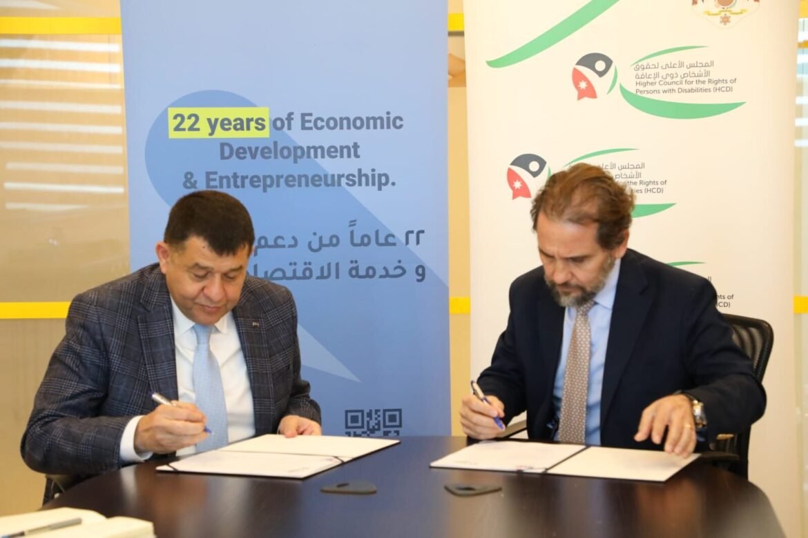 العموم نيوز- وقع سمو الأمير مرعد بن رعد، كبير الأمناء رئيس المجلس الأعلى لحقوق الأشخاص ذوي الإعاقة، ووزير العمل السابق ومؤسس مركز تطوير الأعمال نايف استيتية، اليوم الأحد، مذكرة تفاهم تهدف إلى تعزيز التمكين الاقتصادي للأشخاص ذوي الإعاقة وزيادة مشاركتهم في النشاطات الاقتصادية وريادة الأعمال.