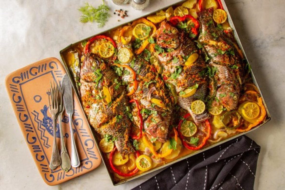 3- ضعي قطع السمك على الخليط واتركيه حتى يغلي ثم ارفعيه على نار هادئة حتى يتسبك.
