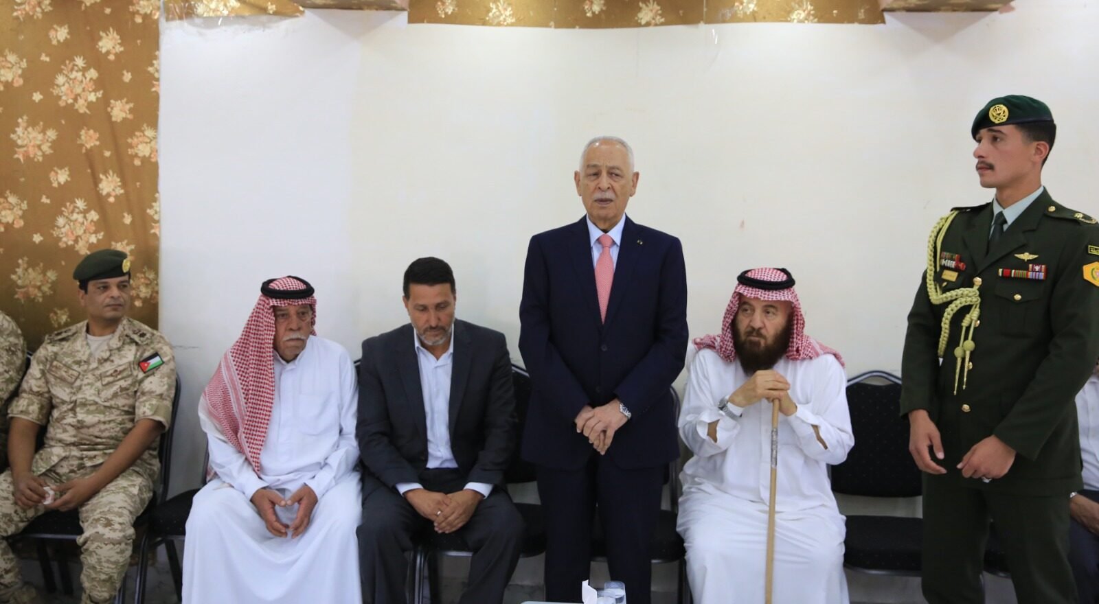 العموم نيوز: مندوبا عن جلالة الملك عبدالله الثاني، وسمو الأمير الحسين بن عبدالله الثاني، ولي العهد، قدم رئيس الديوان الملكي الهاشمي يوسف حسن العيسوي، اليوم الأحد، واجب العزاء إلى عشائر الزعبي والأمير والمعادات والدلاهمة.