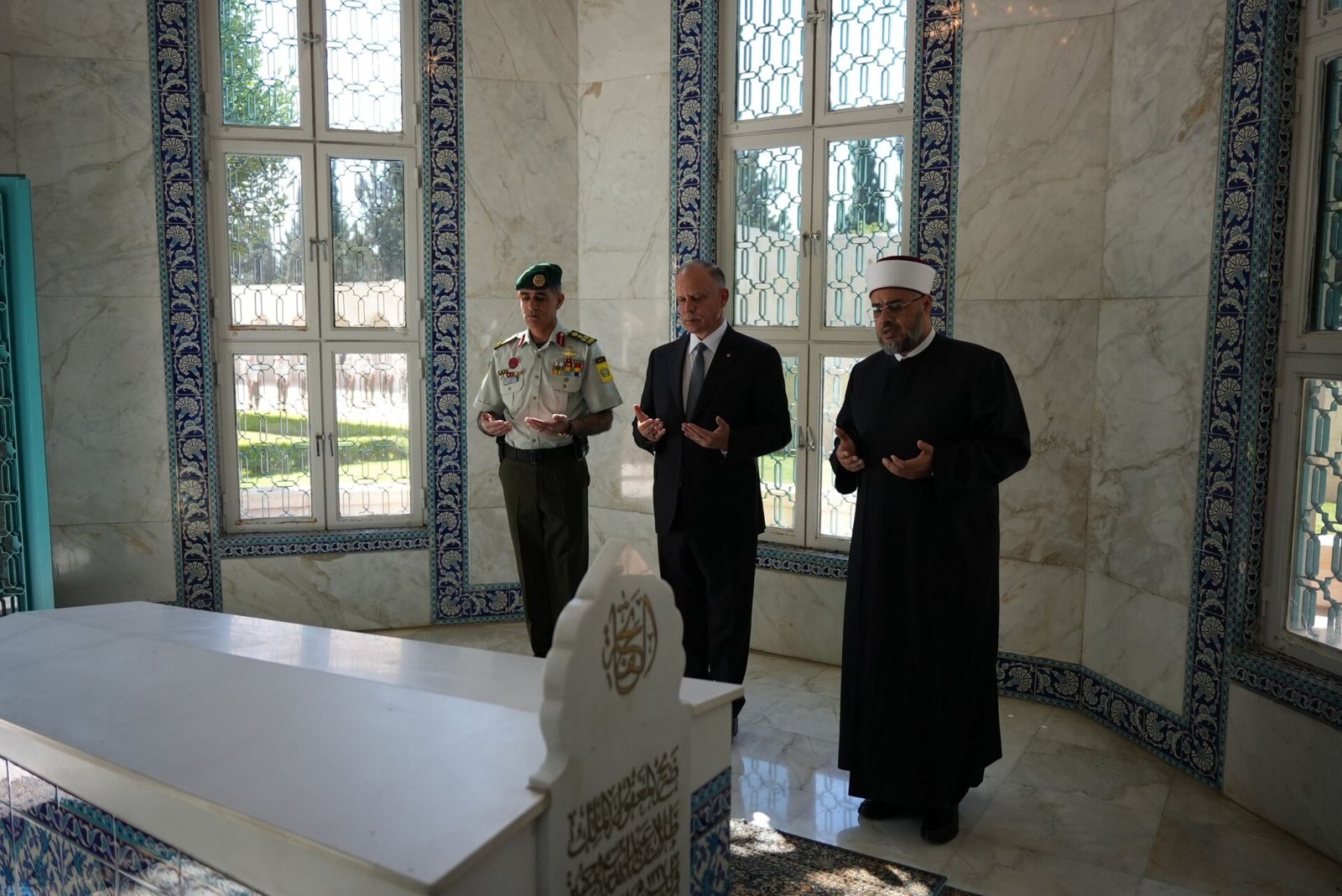 كما زار الضريح وقرأ الفاتحة ووضع أكاليل الزهور سمو الأمير الحسن بن طلال، وسمو الأميرة بسمة بنت طلال، وعدد من أصحاب السمو الأمراء، ورؤساء السلطات، وكبار المسؤولين المدنيين والعسكريين.