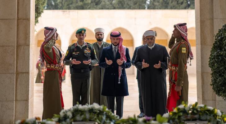 زار سمو الأمير الحسين بن عبدالله الثاني ولي العهد، اليوم الجمعة، ضريح المغفور له بإذن الله، جلالة الملك الحسين بن طلال، طيب الله ثراه، بمناسبة الذكرى السادسة والعشرين لوفاته، التي تصادف اليوم.