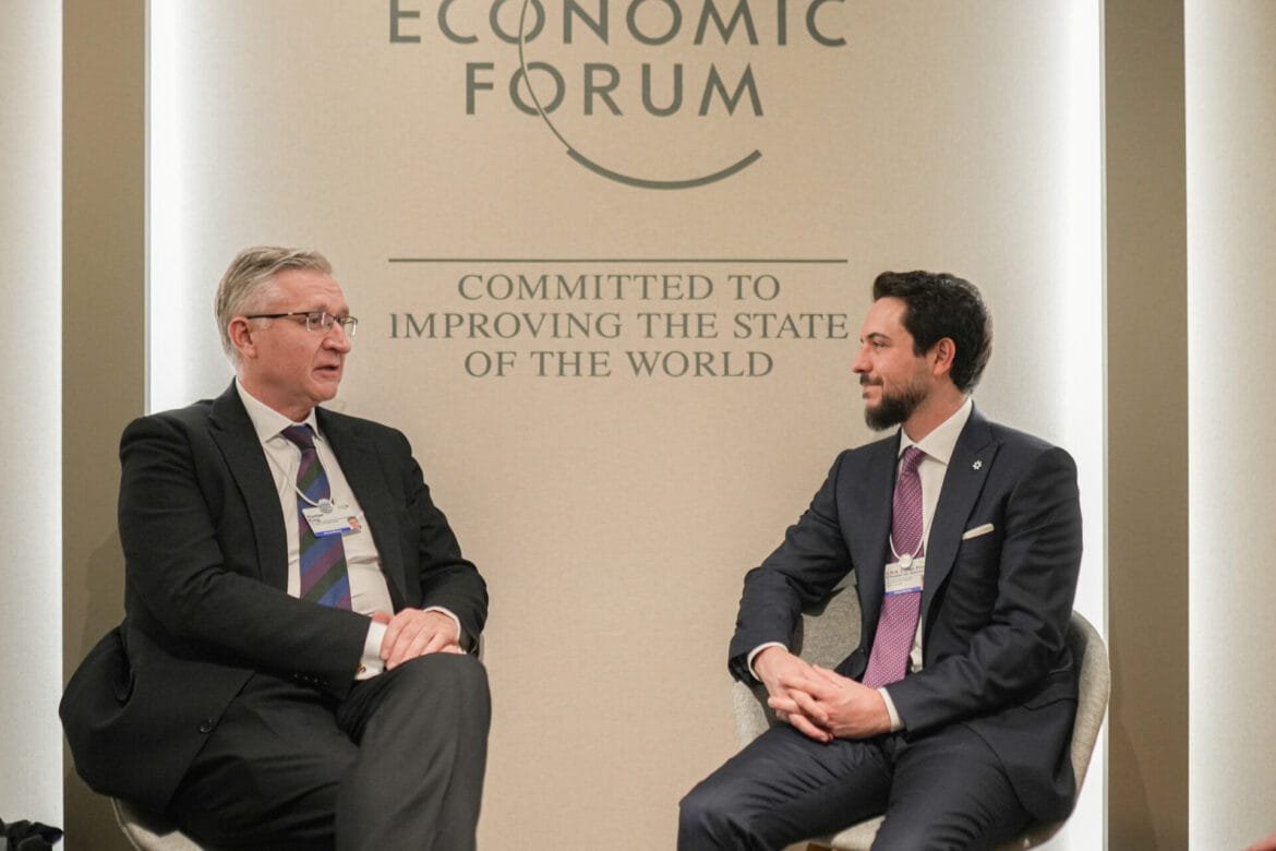 التقى سمو الأمير الحسين بن عبدالله الثاني ولي العهد، اليوم الخميس، عمدة الحي المالي لمدينة لندن اللورد أليستر كينغ، على هامش المنتدى الاقتصادي العالمي في مدينة دافوس السويسرية.