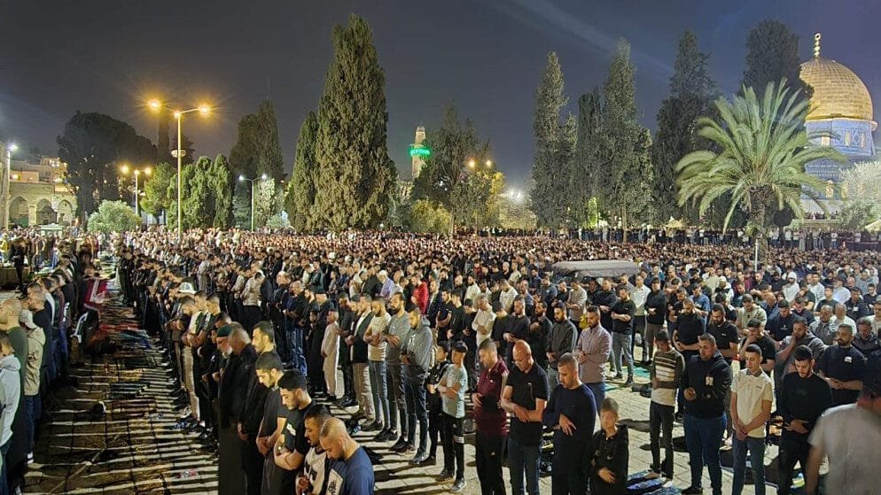 العموم نيوز: أدى 100 ألف مصل، مساء الجمعة، صلاتي العشاء والتراويح وختم القرآن الكريم في المسجد الأقصى المبارك بالقدس.
