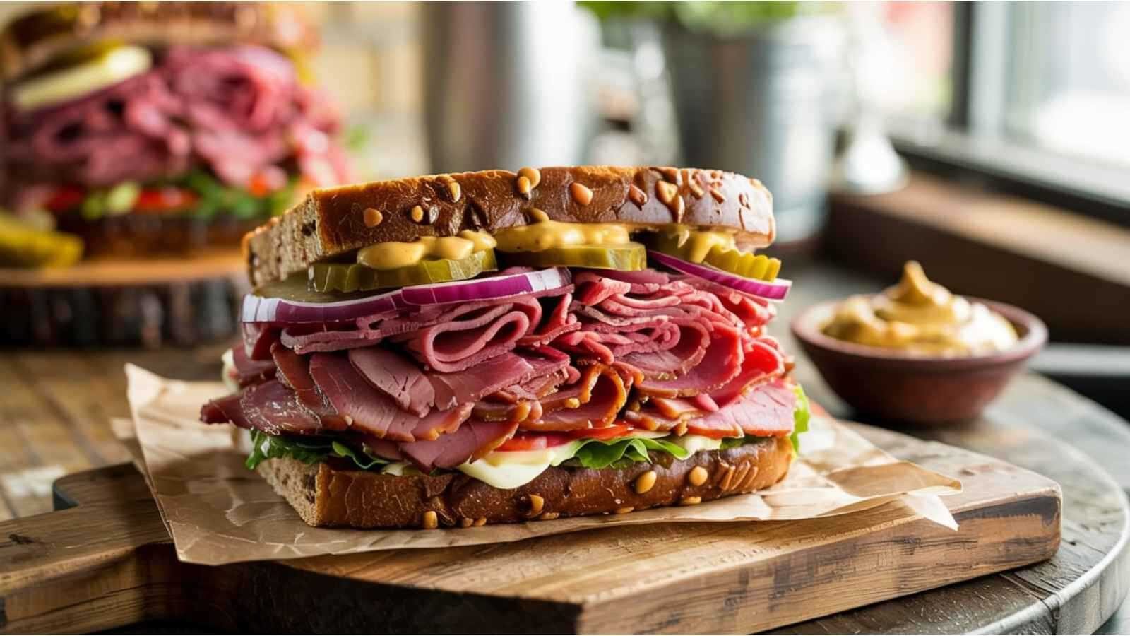 العموم نيوز: يُعد ساندويتش البسطرما المدخن خياراً مثالياً للوجبات السريعة، فهو يمنحك طاقة ونكهة مميزة في وقت قصير. يمكن تقديمه كوجبة غداء خفيفة أو عشاء سريع، ولا يحتاج لمكونات كثيرة أو جهد كبير.